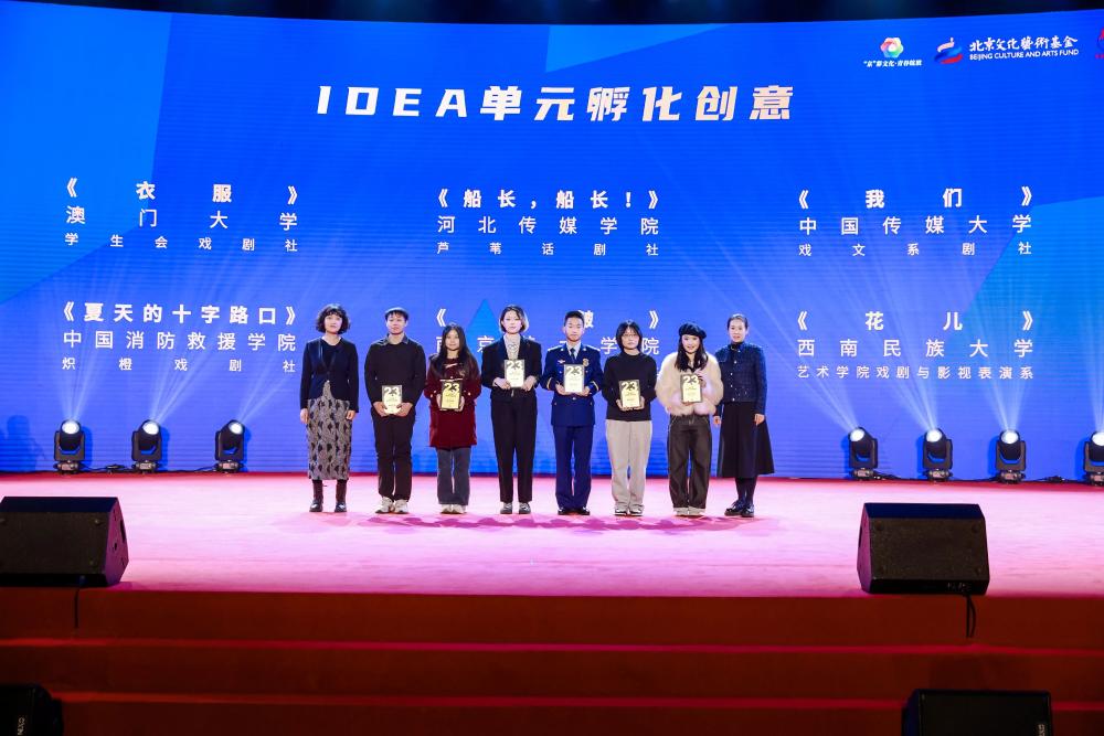 11月22日,“‘京’彩文化 青春绽放”第23届金刺猬大学生戏剧季青春盛典在北京郎园Station准点剧场举行。作为历经二十余载的青年文化IP,金刺猬大学生戏剧季已成为一个组织完善、理念认同度高、架构成熟的校园戏剧文化品牌,成为当代大学生戏剧才华的展示平台。在本届戏剧季中,河北传媒学院戏剧影视文学专业第二课堂“芦苇话剧”报送的原创作品《船长,船长!》在IDEA单元荣获“孵化创意”奖。IDEA单元为本届新增奖项,旨在鼓励戏剧创意与概念孵化,为青年创作者提供展示平台和孵化支持。