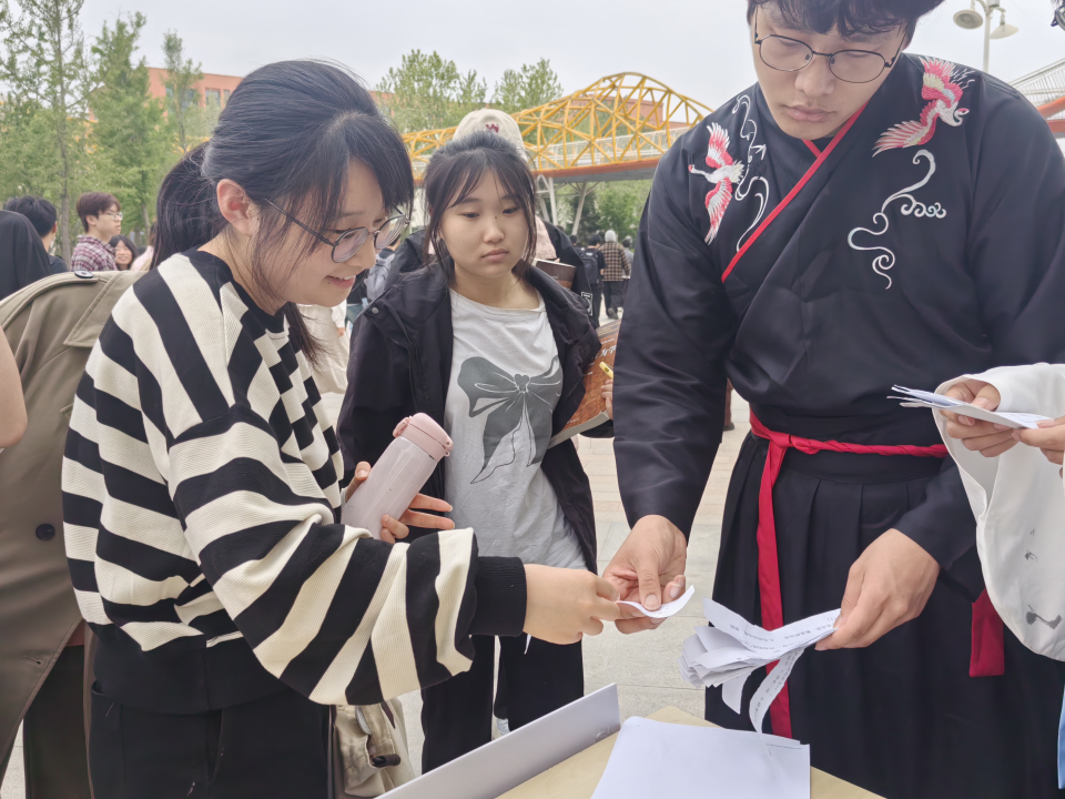 为切实做好学院新一轮教育教学审核评估工作,丰富学生课外文化生活。4月18日,国际传播学院知行国学社于兴安校区A座小广场前参加校团委活动。