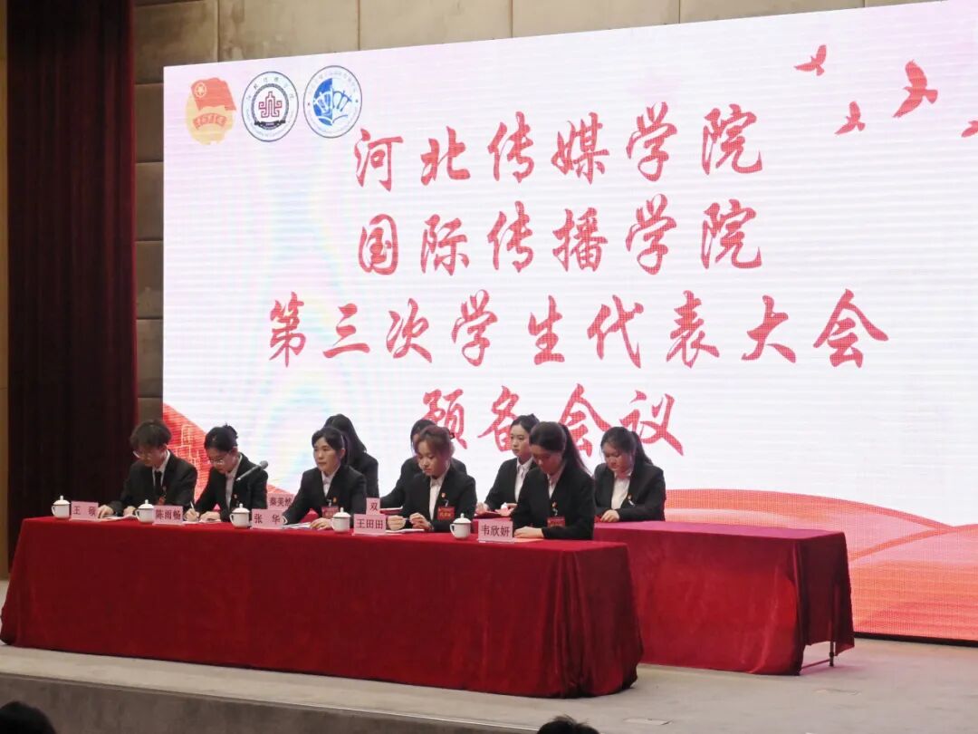 12月17日,国际传播学院于兴安校区影视楼C座多功能厅召开第三次学生代表大会,大会选举产生共青团河北传媒学院国际传播学院第十二届学生委员会委员。出席本次大会的领导嘉宾有河北传媒学院团委书记张家璇、我院院长李志升、副院长李改婷、团委书记张华及各辅导员。