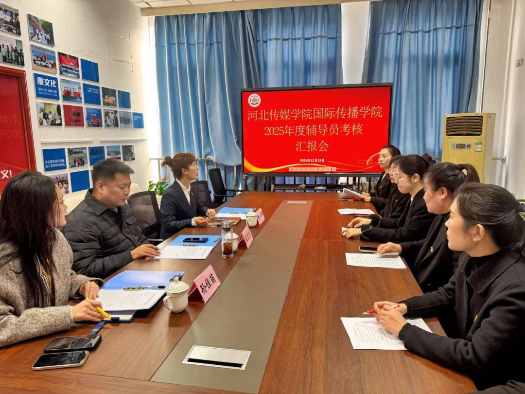 为切实加强辅导员队伍建设,落实学校辅导员考核工作要求,12月19日,国际传播学院于兴安校区A413会议室召开2025年度辅导员考核汇报会。会议由国际传播学院党总支书记杨菲主持,河北传媒学院学生处副处长秦宏亮、干事孙佳苗莅临现场指导工作,全体辅导员参会。