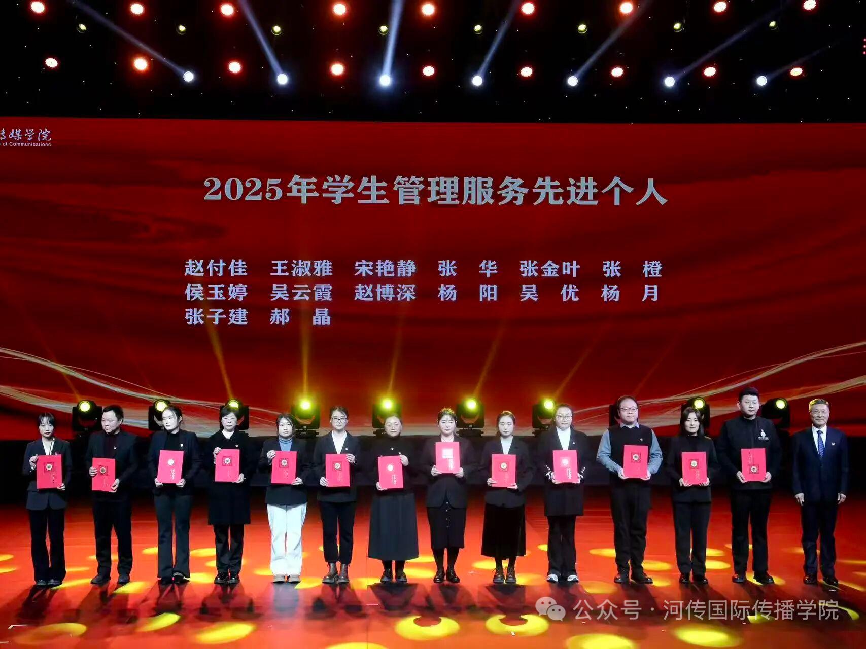 1月7日,河北传媒学院2025年学生工作总结表彰大会于兴安校区1200平演播厅隆重召开,我院荣获多项集体与个人表彰,成果丰硕。