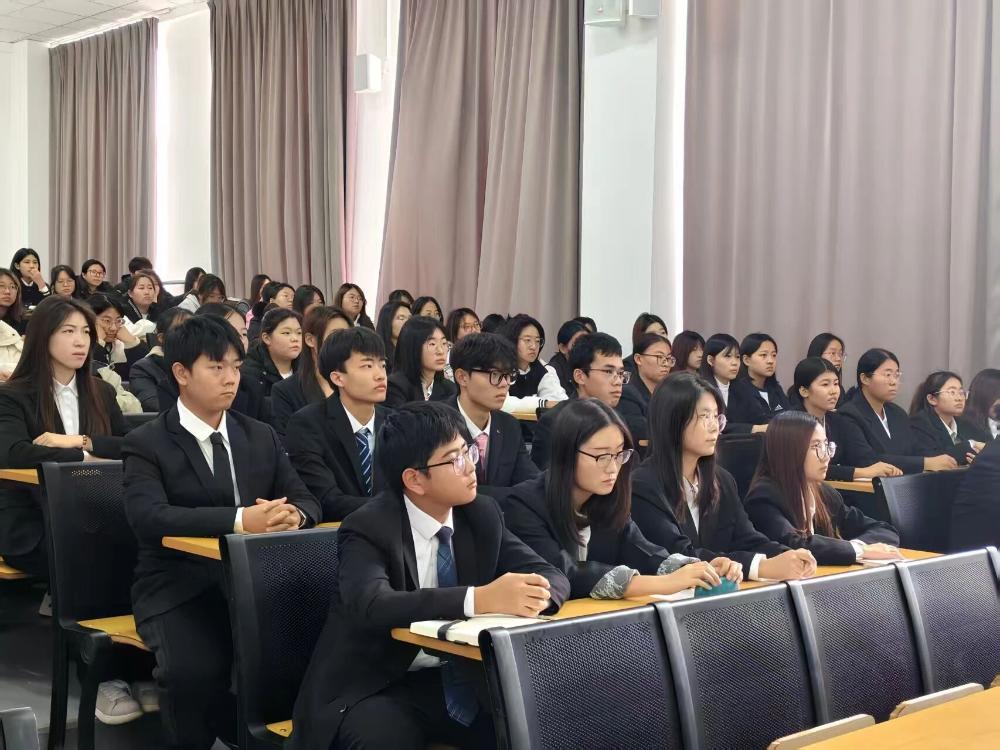 10月31日,国际传播学院于鹿泉校区1-301教室召开第二期新生学生干部培训大会,特邀河北传媒学院安全工作处副处长何二佳主讲,我院党总支书记杨菲以及2025级全体学生干部共同参会。