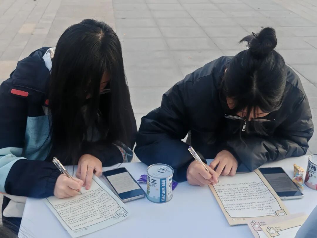 本次书信写作活动在教学楼前精心布置了写信角,为同学们提供了一个专注创作的书信写作平台。活动现场气氛温馨,同学们凝神执笔,以纸墨承载思绪,字里行间流淌着真挚情感。此外,活动还将为优秀作品创作者发放精美奖品。整场活动组织有序,在墨香氛围中圆满落幕。