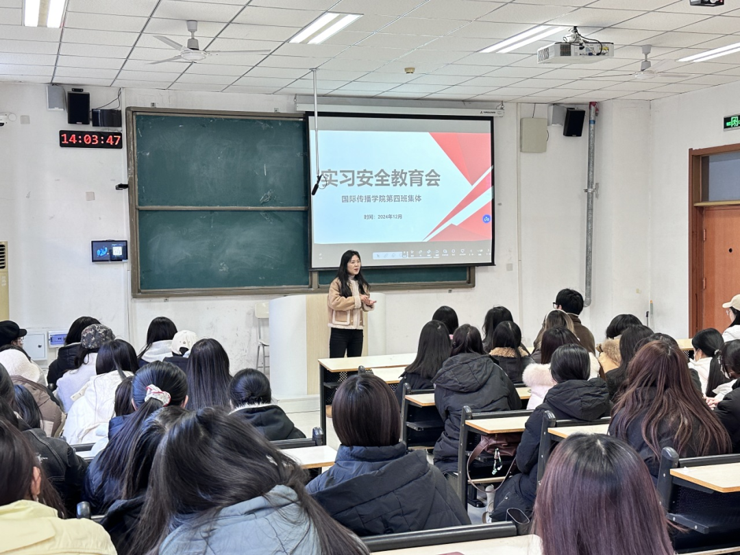 12月27日,国际传播学院第四班集体在B127召开关于实习期间安全的主题班会。