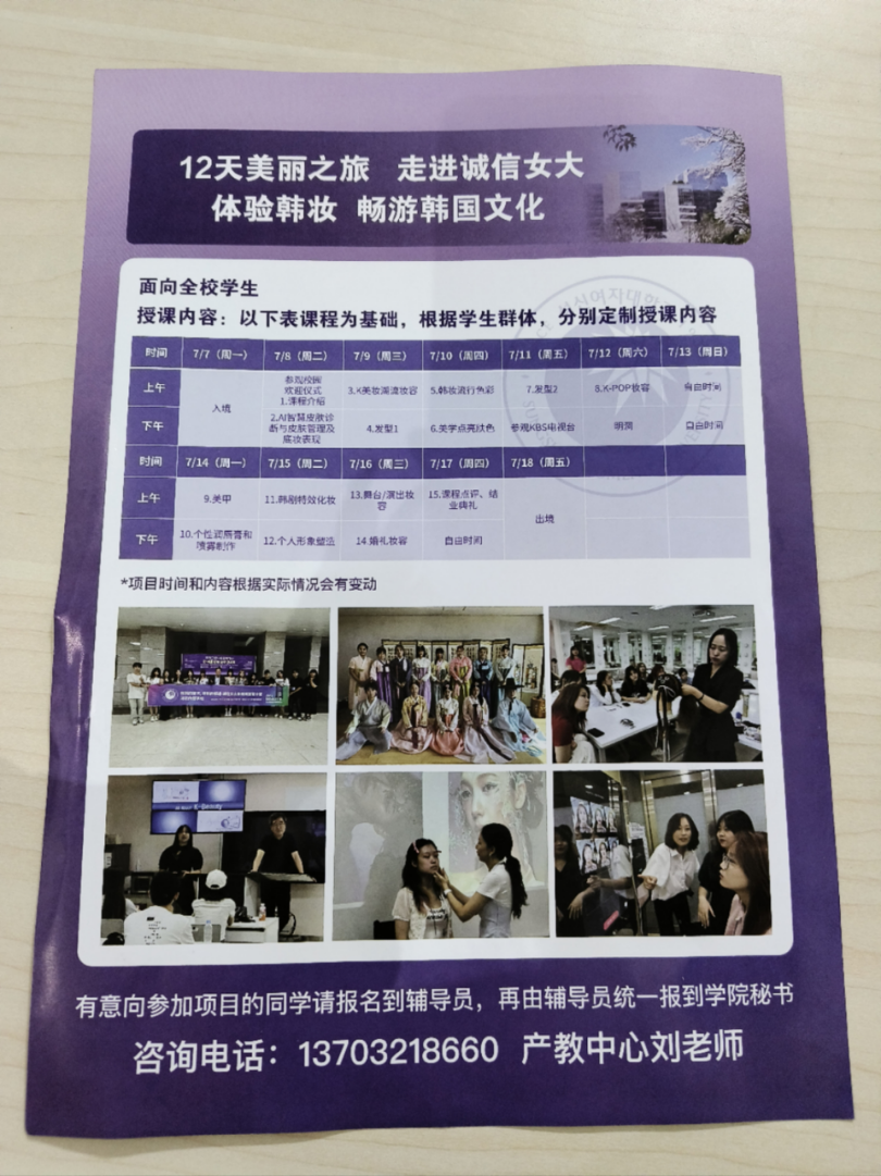 河北传媒学院与韩国诚信女子大学的合作交流频繁且深入,双方就长短期美妆类专业实习实训项目进行探讨并确定初步方案,拟选派河北传媒学院影视类、新闻类、美术类、表演类等学院的相关专业学生赴韩实习实训,利用韩国诚信女子大学在美妆专业的优势资源,如专业排名第一、拥有本硕博授予权、课程设置丰富等,为学生提供实践机会。从而促进人才培养和双校之前更好的交流沟通,希望对此感兴趣的同学能够积极参与该实习实训项目,丰富自己的眼界和知识。