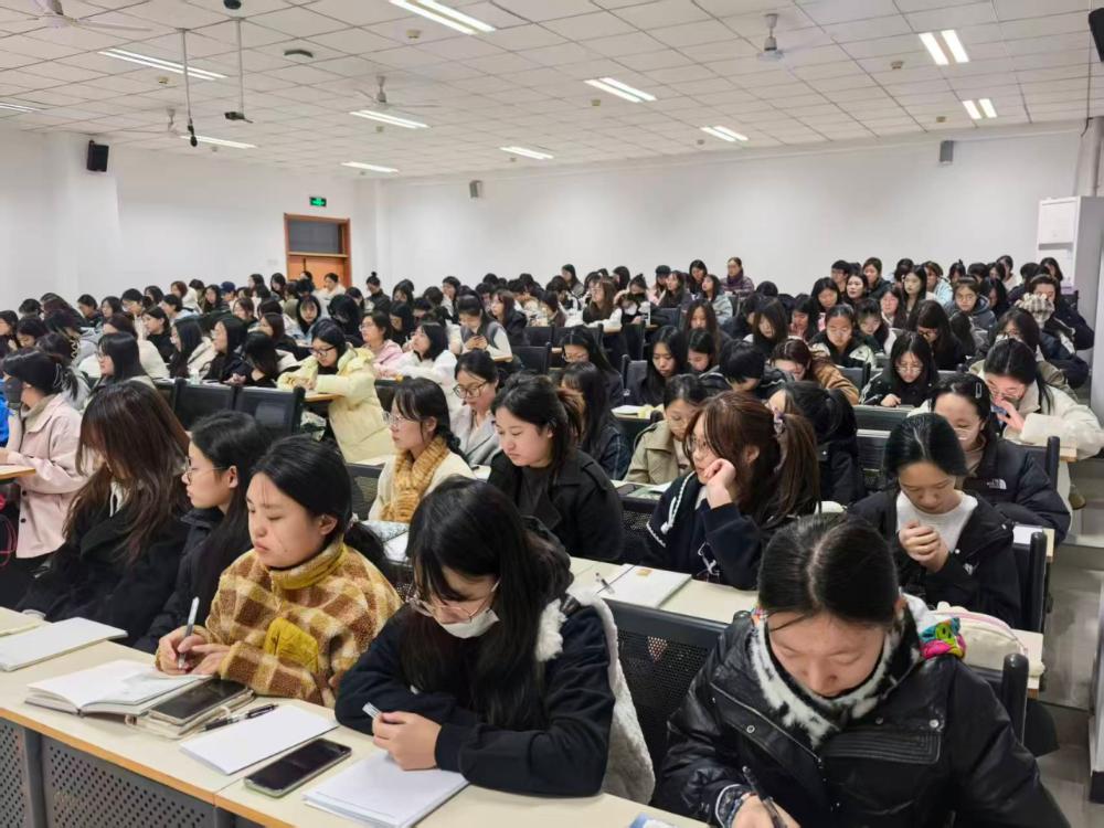 随后,孙莹老师结合本科教育教学审核评估知识手册,系统解读了教育教学审核评估的关键内容,帮助同学们进一步理解和掌握相关知识点。同时,她深入阐述了新一轮教育教学审核评估的重要意义,并引导学生严格对照手册要求,规范日常行为,以实际行动支持学校评估工作。